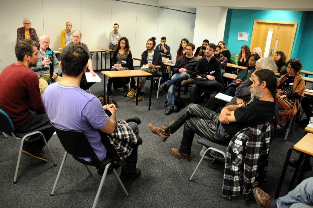 Memed Aksoy (left), Kurdish People’s Assembly UK, addressing the workshop ‘Revolutionary change and the Kurdish movement’.