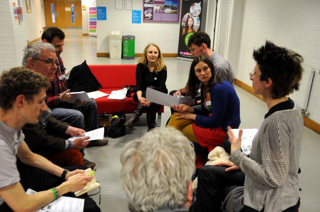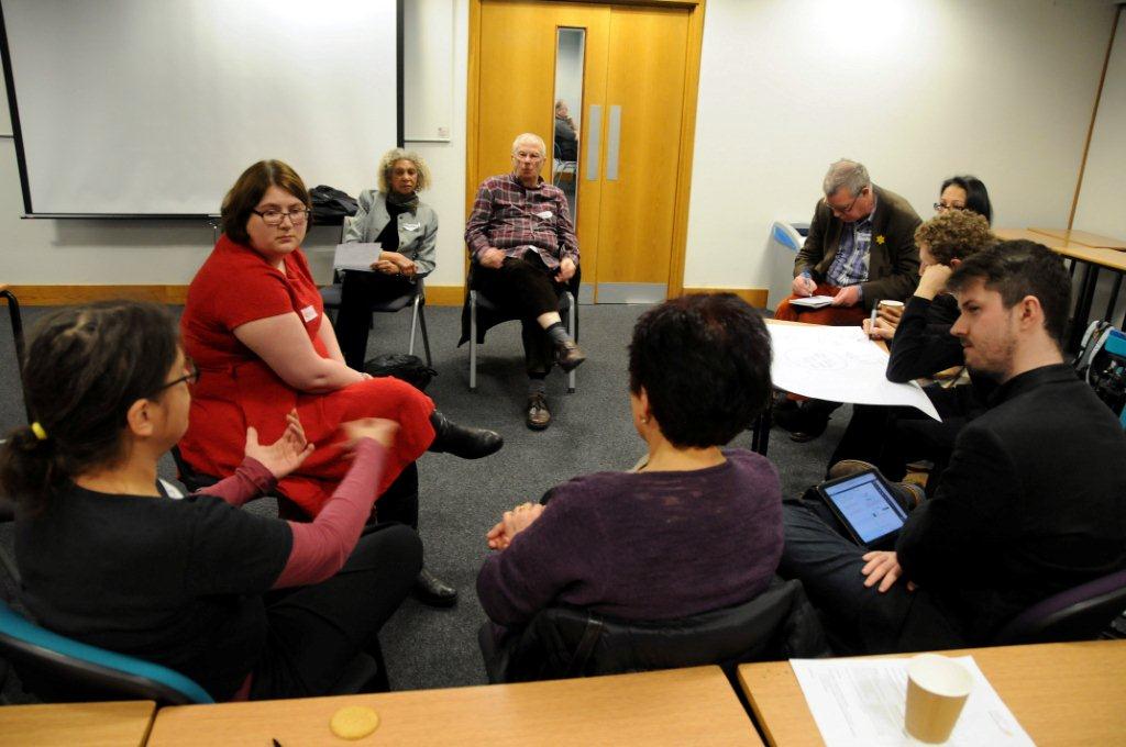 Alexandra Runswick, director of Unlock Democracy (in red), listens to a point in her working group